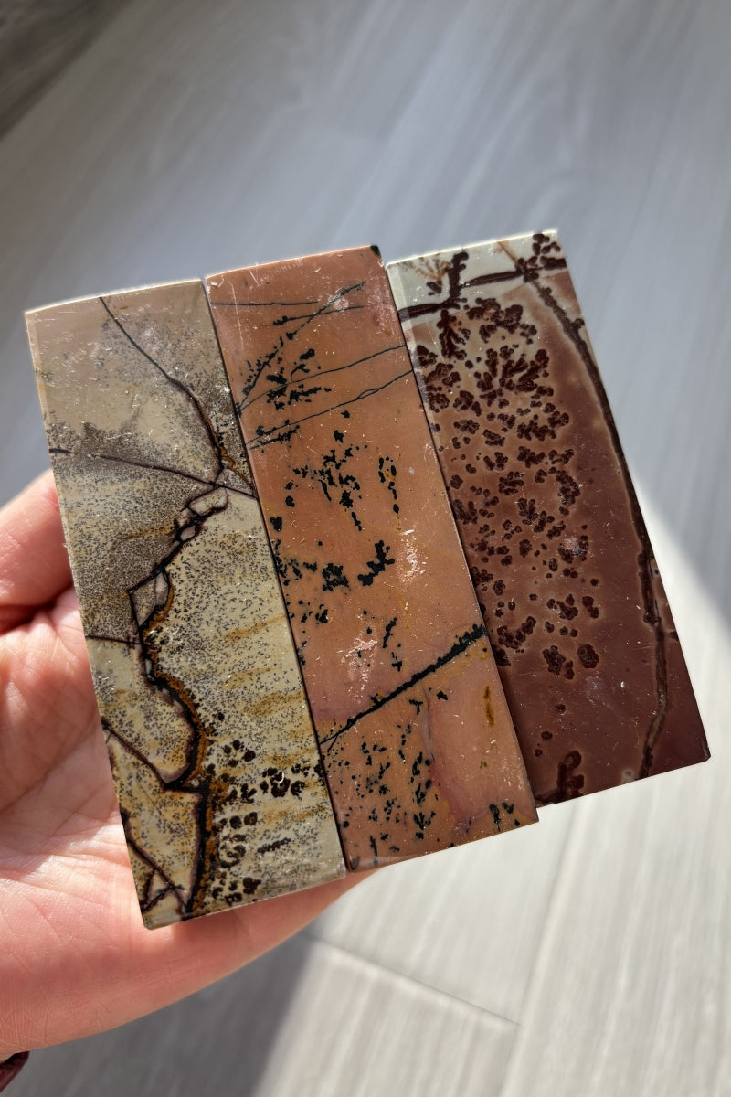 Picture Jasper is a grounding stone celebrated for its natural landscape patterns and earthy energy. These square tower points showcase the stone's distinctive scenic banding and warm brown tones, making each piece a unique natural artwork.