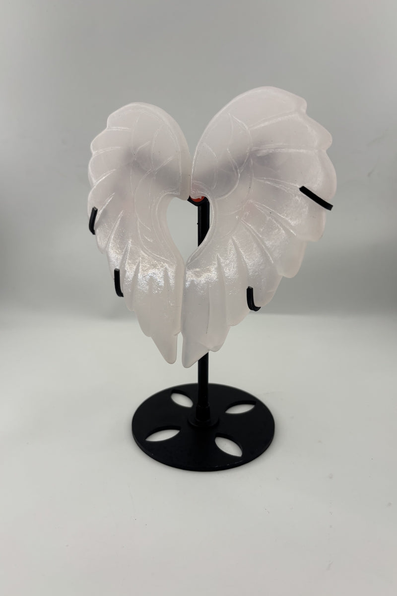 Brightly Flashy UV Pink Calcite Heart Wings with Free Holder